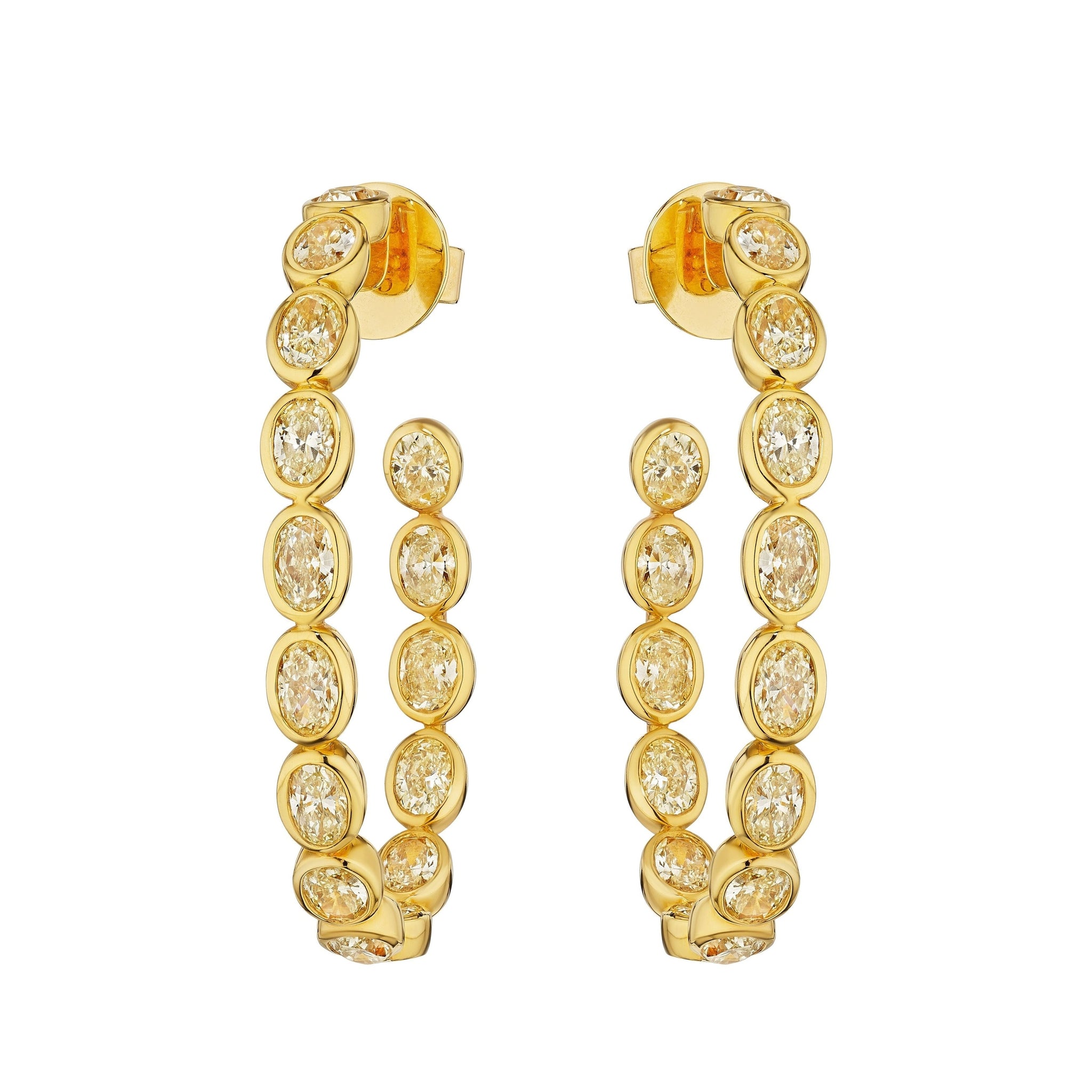 Exuding elegance and refined luxury, these 18KT Yellow Gold earrings are masterfully set with an extraordinary 5.93 carats of natural diamonds. Crafted with meticulous precision, each stone is chosen for its superior brilliance, creating a radiance that captures and reflects light with every movement. A testament to exceptional craftsmanship, the bold yet graceful design merges timeless sophistication with contemporary allure. Perfect for evening soirées or distinguished occasions, this magnificent pair is more than jewelry—it is a statement of elevated taste and timeless prestige.