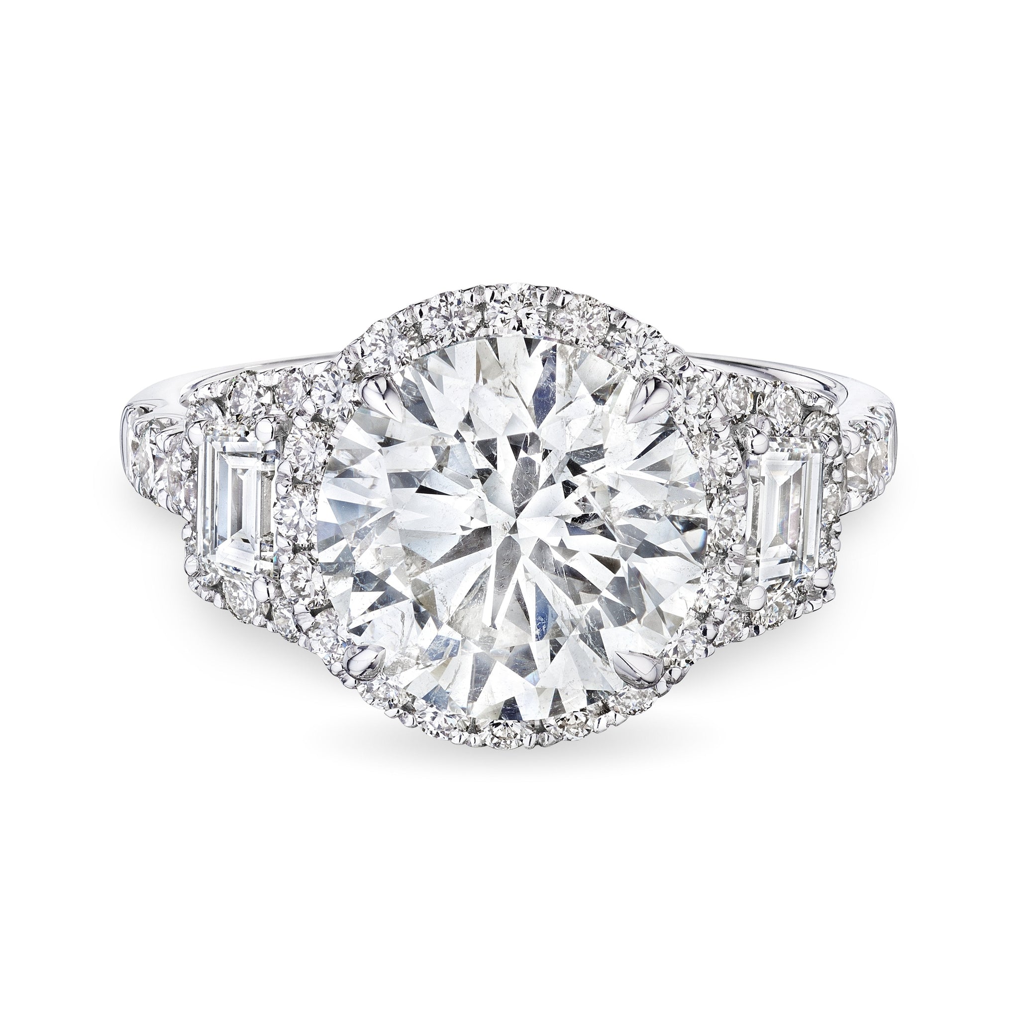 3.35 CT Round Shape Center Diamond with 1.05 CT Trapezoid and Accent Diamonds