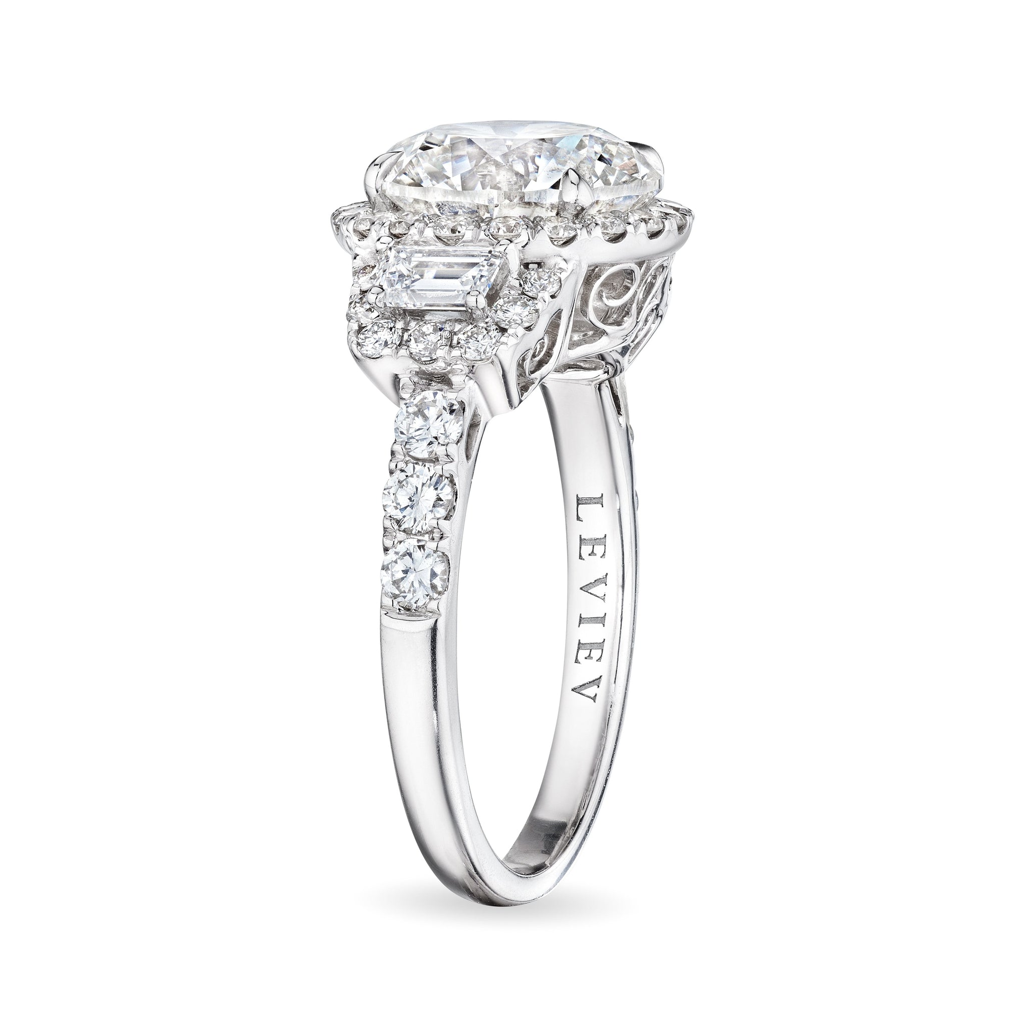 "Prestige" Ring with Round Shape Diamond and Trapezoids, 3 CT Leviev Rings Rings "Prestige" Ring with Round Shape Diamond and Trapezoids, 3 CT Leviev Rings Rings